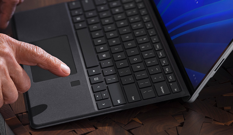 使用 Surface Pro 带指纹识别的特制版专业键盘盖将 Surface Pro 81 或 Surface Pro X1 完全转换为笔记本电脑模式。