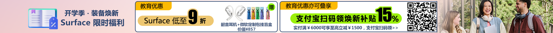 完成教育认证,购 Surface 低至9折,叠享支付宝焕新补贴15%